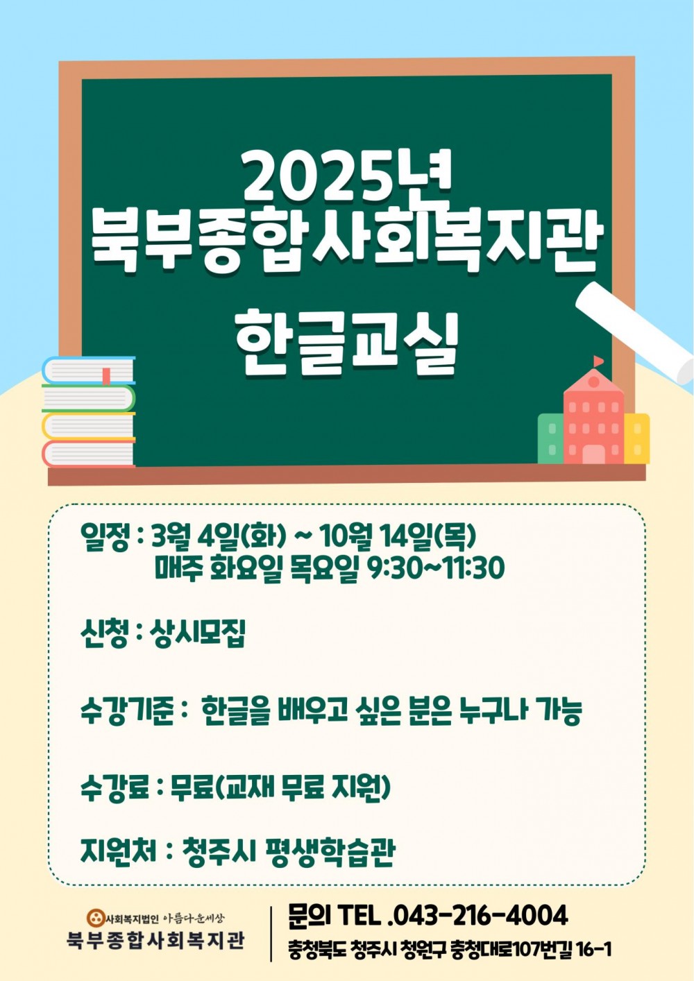 2025년 문해교육 한글교실 참여자 모집 페이지 정보 작성자 작성자 관리자 작성일작성일 2025.02.24 조회조회 63 본문 첨부파일 2025년 문해교육 한글교실 참여자 모집 이전글2025년 신규 동아리 모집 다음글2025년 문해교육 한문교실 참여자 모집 목록 댓글목록 0 댓글목록 등록된 댓글이 없습니다.