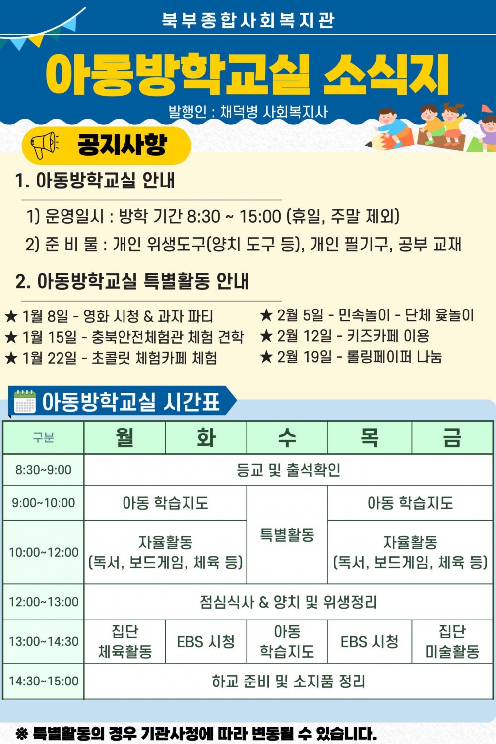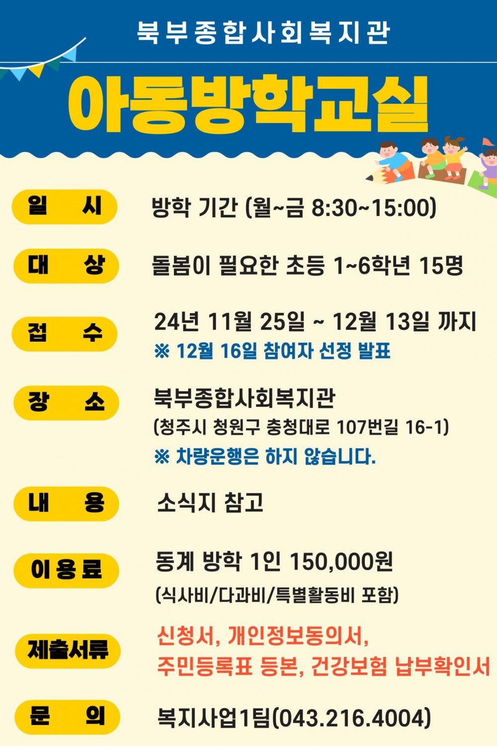 (게시글 필독!) 2025년 아동방학교실(동계) 신청 안내