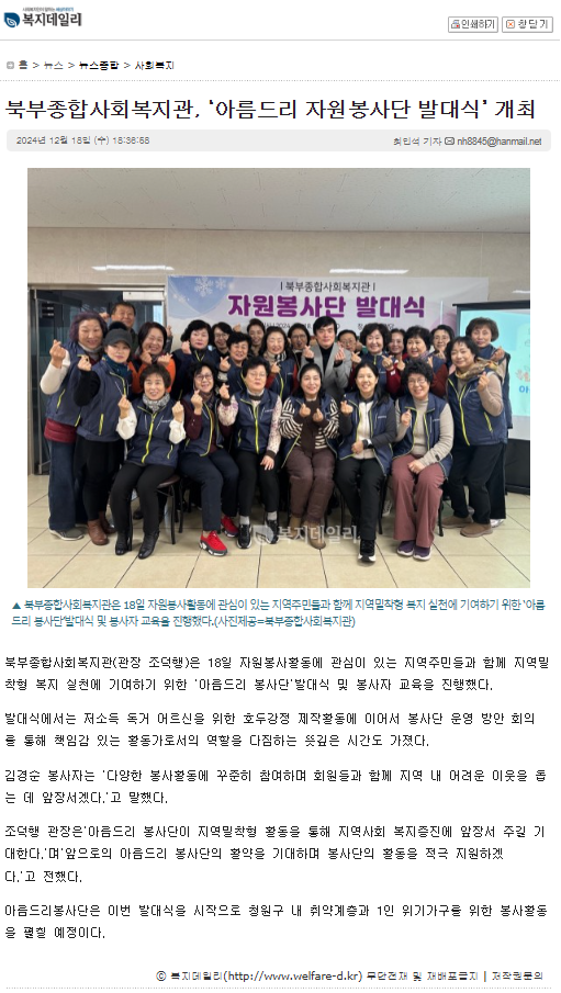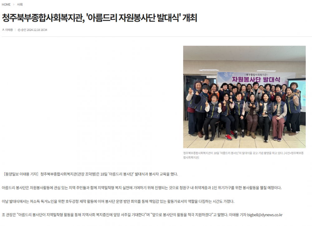 '아름드리 자원봉사단' 발대식 개최 보도자료