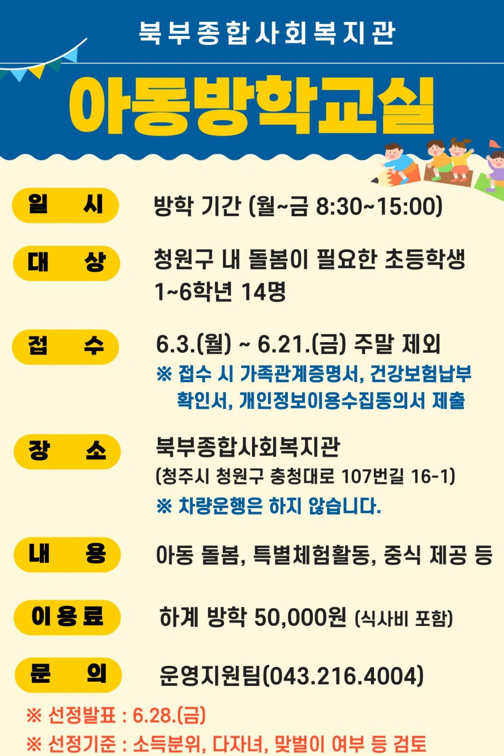 (게시글 필독!) 2024년 아동방학교실(하계) 신청 안내