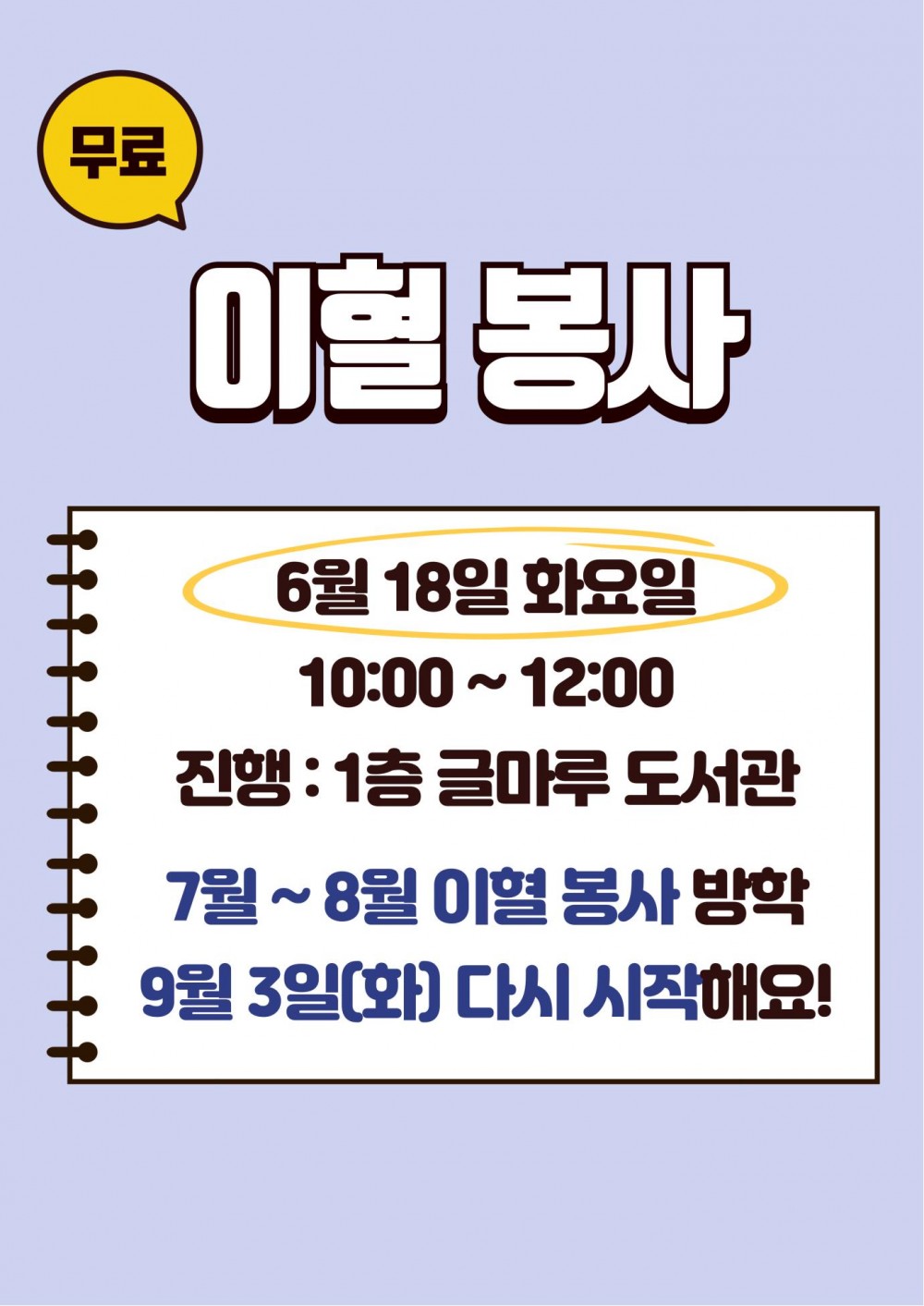 다가오는 6월 18일 화요일을 마지막으로 여름 방학에 들어갑니다.