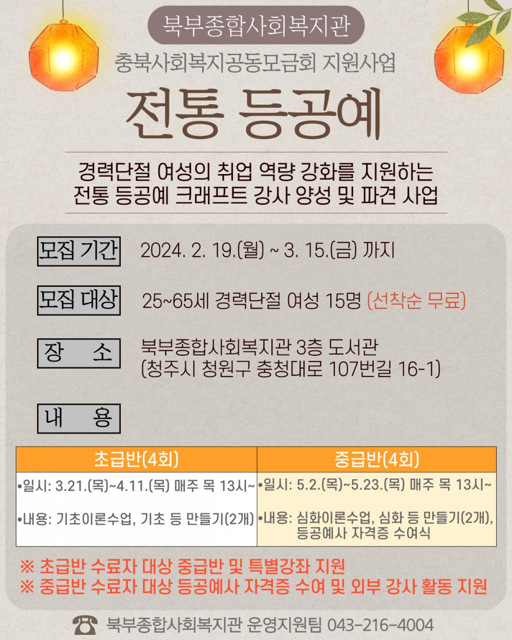 2024년 충북사회복지공동모금회에서 지원하는 <전통 등공예> 참여자를 모집합니다.
