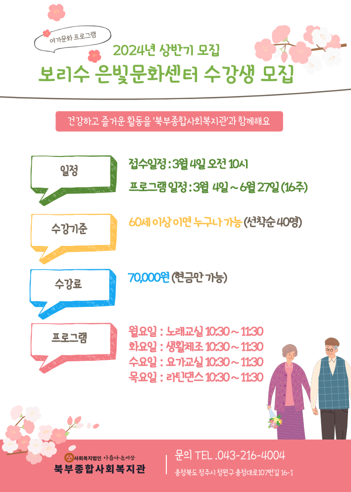 2024년 보리수 은빛문화센터 상반기 참여자 모집합니다.