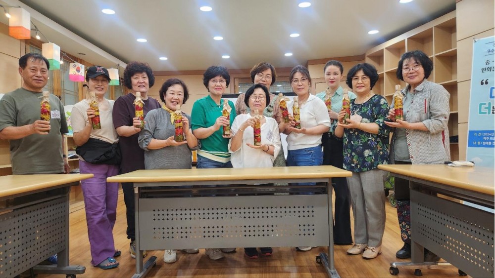 마음을 더는 시간 6회기가 진행되었습니다. 일상생활에도 유용하게 사용할 수 있으며 꽃으로 건강을 챙길 수 있는 꾳식초 만들기! 참여자들 모두 신기해하며 기분 좋은 시간 이었습니다! ^^