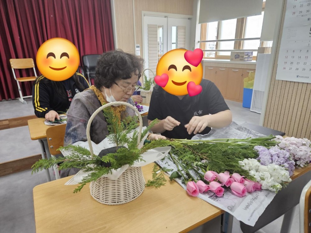 학생들과 어르신들이 같이 꽃바구니를 만들며 즐거운 시간을 보낼 수 있었습니다. 감사합니다!