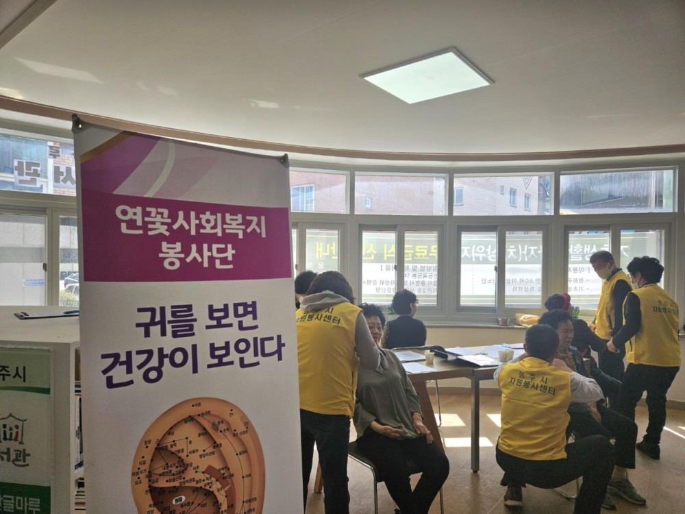 이혈봉사는 혈압 측정을 하고, 귀를 통해 건강을 확인하여 간단한 상담과 패치 부착을 진행합니다.