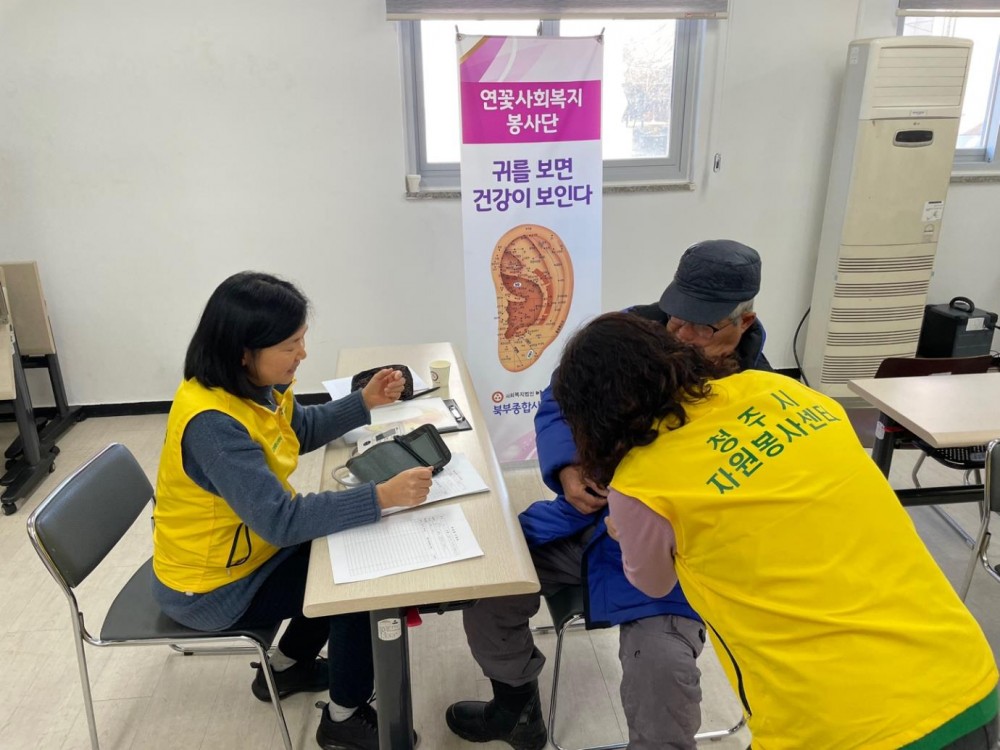 이혈봉사는 혈압 측정을 하고, 귀를 통해 건강을 확인하여 간단한 상담과 패치 부착을 진행합니다.