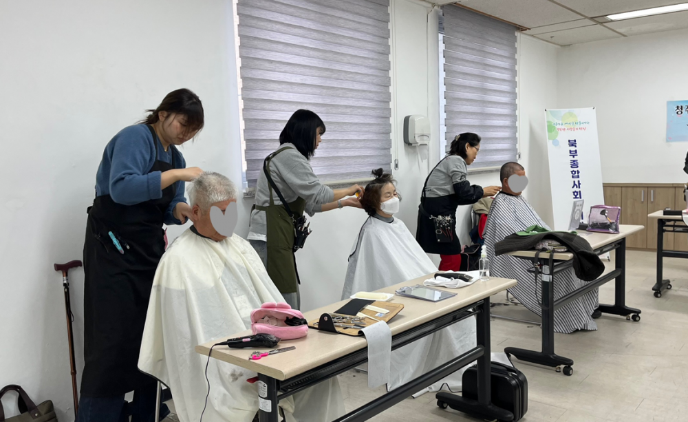 복지관 이용 어르신들을 대상으로 커트, 파마 및 염색 서비스를 지원하고 있습니다.