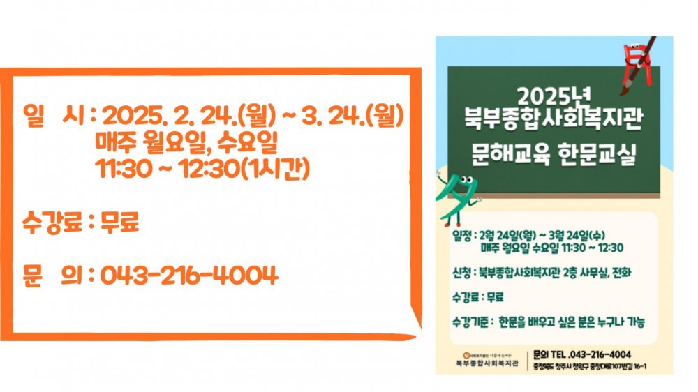 2025년 문해교육 한문교실 진행 페이지 정보 작성자 작성자 관리자 작성일작성일 2025.02.24 조회조회 60 본문 2025년 문해교육 한문교실 진행 이전글2025년 2월 면사랑데이 다음글2025년 디지털배움터 금융교육 진행 목록