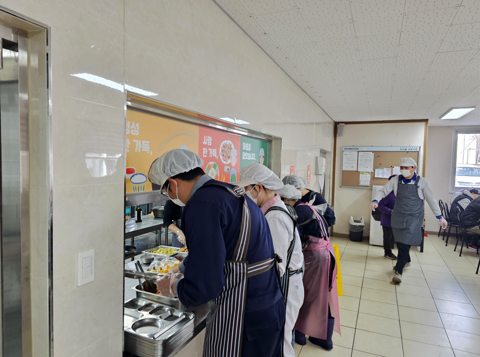 (주)면사랑 측의 후원음식과 봉사를 통해 따뜻한 급식을 무료로 제공하고 있습니다.