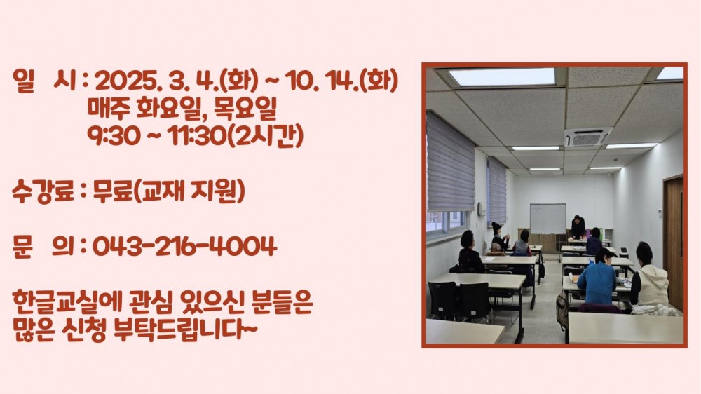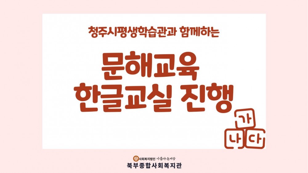 2025년 문해교육 한글교실 진행 페이지 정보 작성자 작성자 관리자 작성일작성일 2025.03.04 조회조회 60 본문 2025년 문해교육 한글교실 진행 이전글2025년 이혈서비스 2회기 진행 다음글2025년 은빛문화센터 입학식 진행 목록