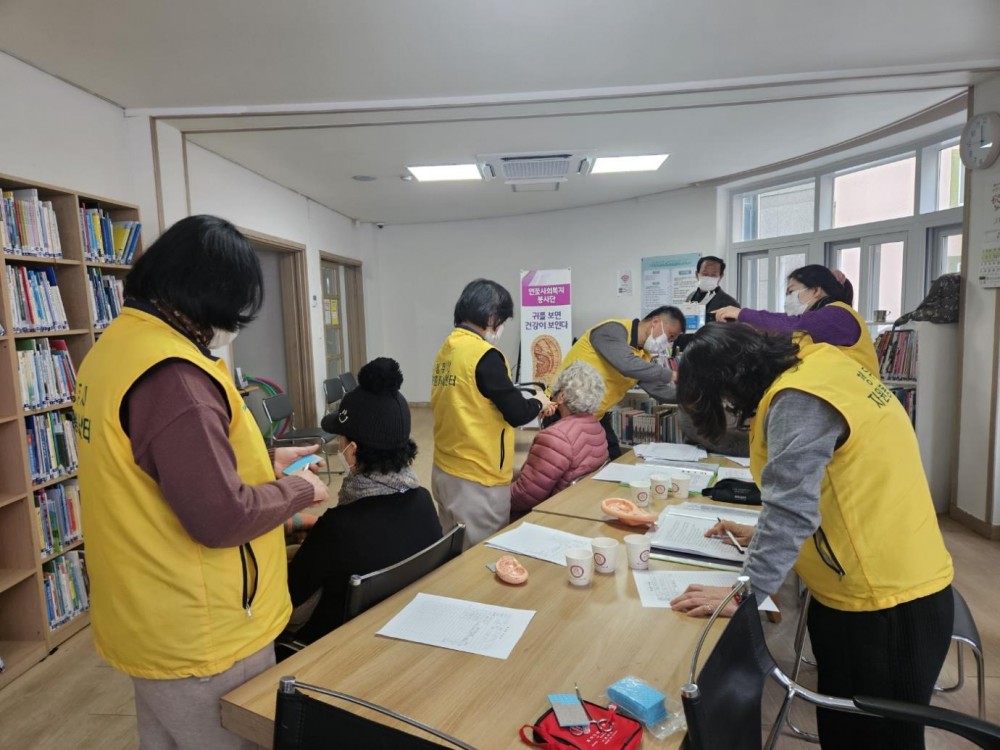 이혈봉사는 혈압 측정을 하고, 귀를 통해 건강을 확인하여 간단한 상담과 패치 부착을 진행합니다.