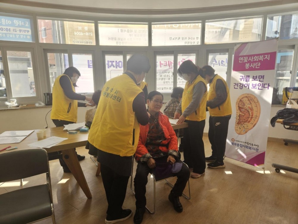 이혈봉사는 혈압 측정을 하고, 귀를 통해 건강을 확인하여 간단한 상담과 패치 부착을 진행합니다.