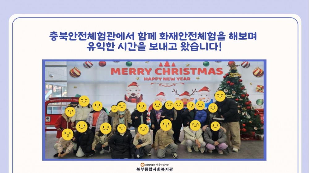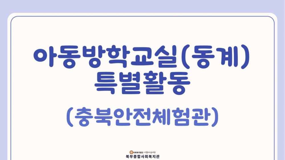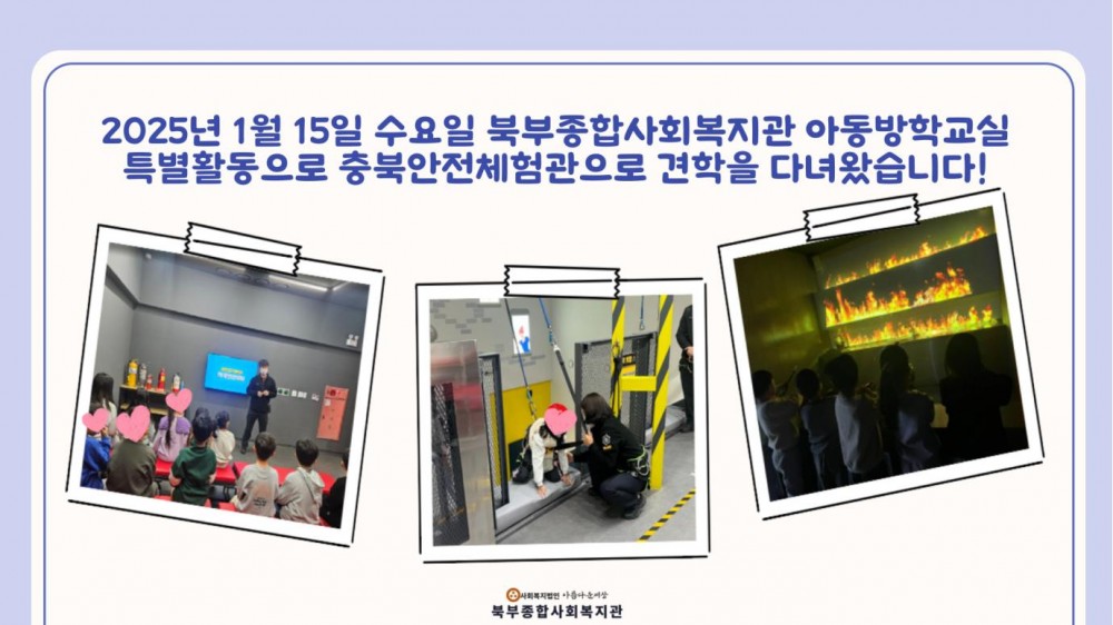 2025년 아동방학교실(동계) 특별활동 (충북안전체험관) 페이지 정보 작성자 작성자 관리자 작성일작성일 2025.01.15 조회조회 101 본문 2025년 아동방학교실(동계) 특별활동 (충북안전체험관) 이전글청주미용학원 · 착한미용실 업무협약식 다음글2025년 아동방학교실(동계) 특별활동 (영화시청 및 과자파티) 목록