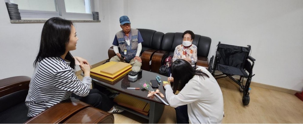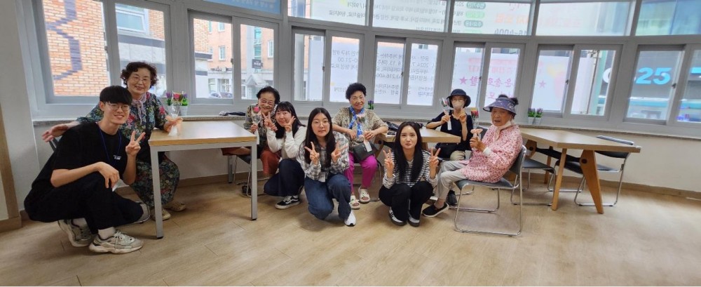 무더위쉼터에서 실습생들이 준비한 꽃 한 송이를 어르신들께 선물하며, 무더운 여름날 작은 행복을 전해드렸습니다.