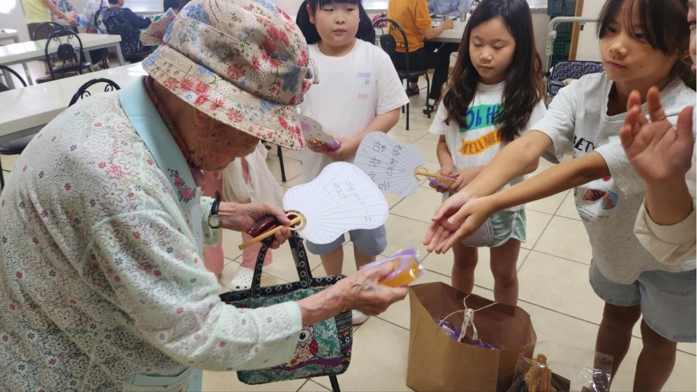 학생들이 만든 부채 및 비누를 경노식당 이용 어르신들께 나눠드렸습니다.