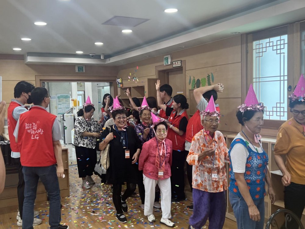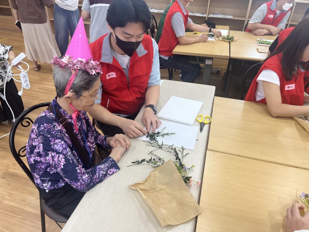 '동아갈비'에서 후원해주신 맛있는 점심식사와 더불어 'LG에너시솔루션'에서 생신선물 후원과 꽃액자를 같이 만드는 시간을 가졌습니다.