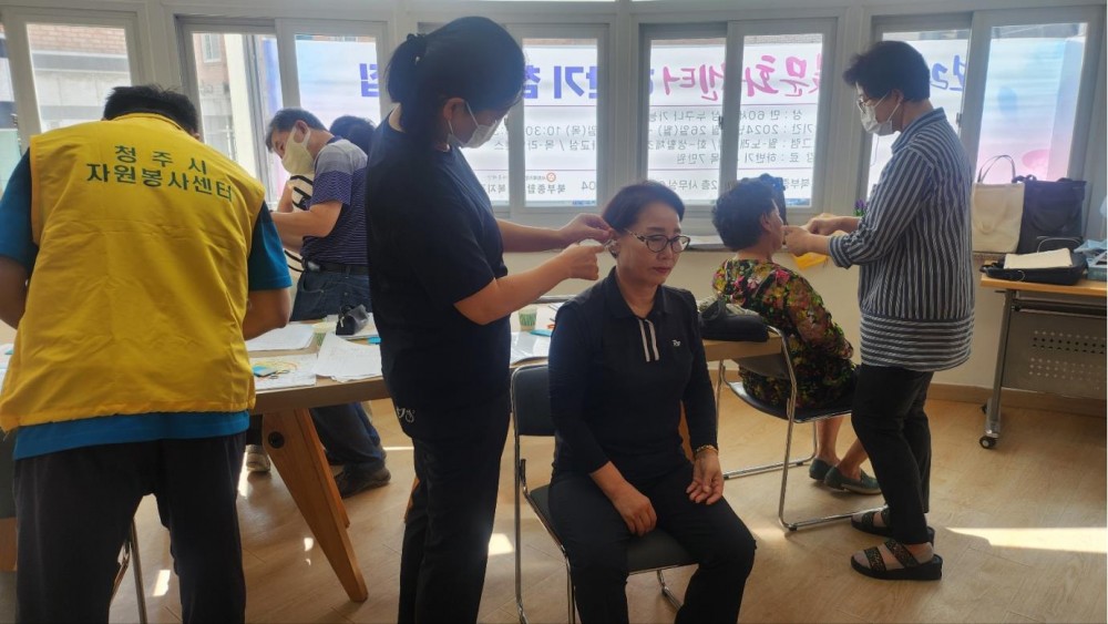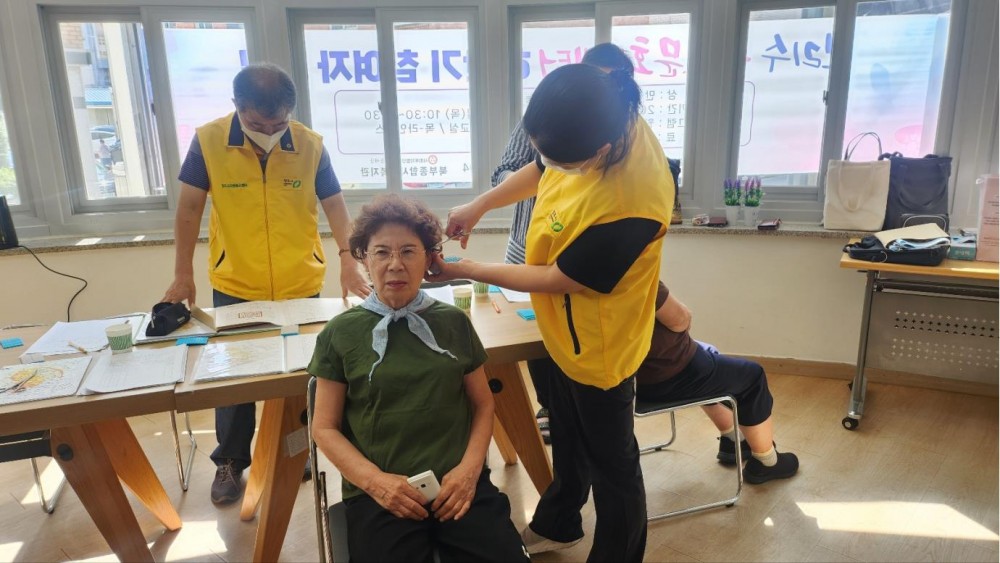어르신들과 안부도 전하며, 혈압측정을 시작으로 이혈봉사를 시작했습니다.
