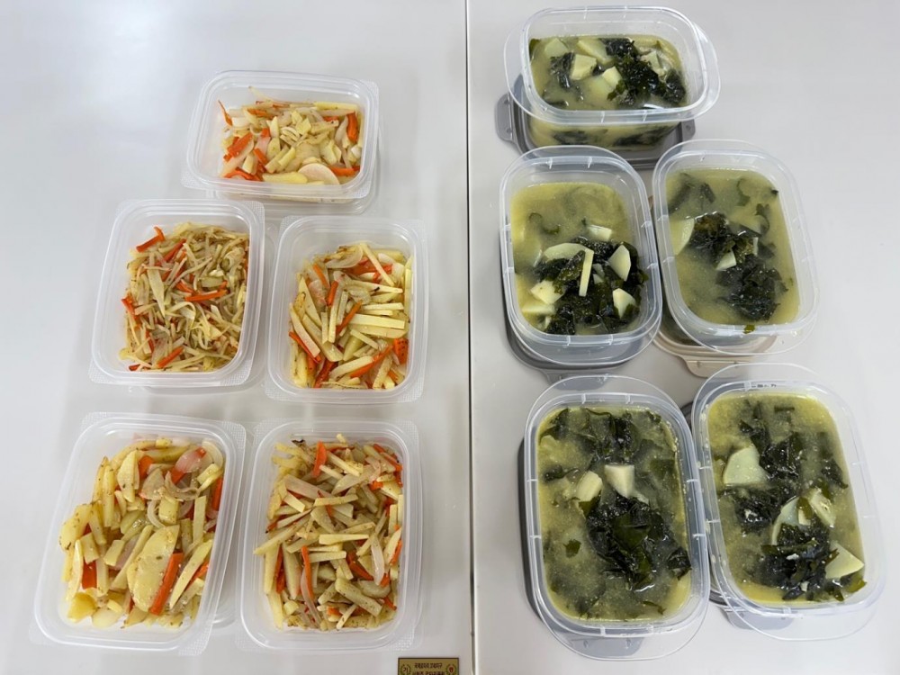 두가지 요리도 문제 없는 멋진 요리사들께서 맛있는 들깨감자미역국과 감자볶음을 완성하셨습니다!