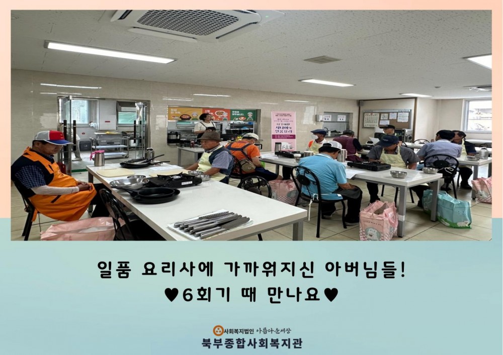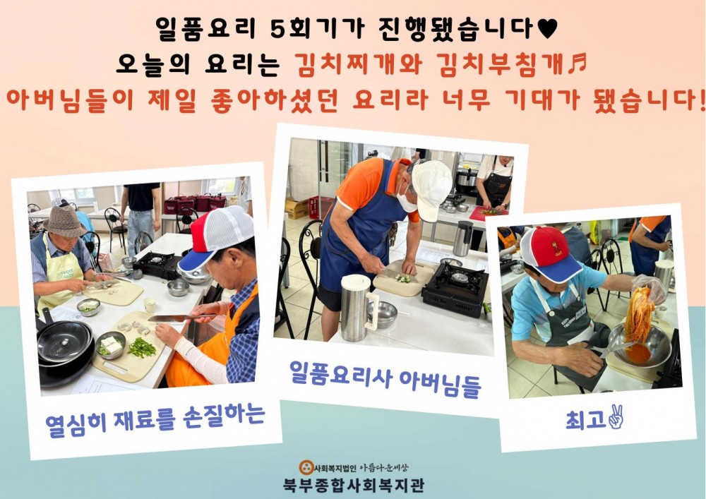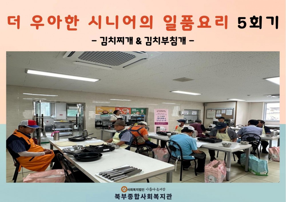 2024년 '더 우아한 시니어의 일품 요리 교실' 5회기 진행(김치찌개와 김치부침개) 페이지 정보 작성자 작성자 관리자 작성일작성일 2024.06.20 조회조회 88 본문 2024년 '더 우아한 시니어의 일품 요리 교실' 5회기 진행(김치찌개와 김치부침개) 이전글2024년 6월 면사랑DAY 다음글6월 행복꽃이 피었습니다♥ 목록