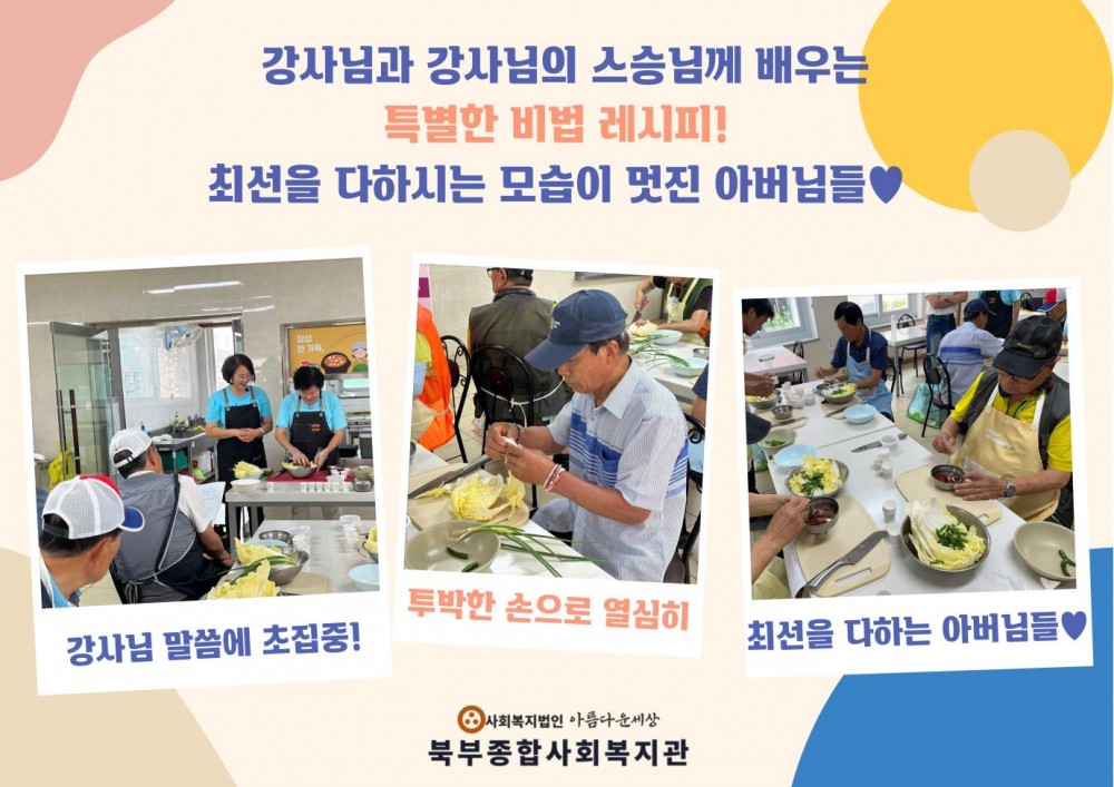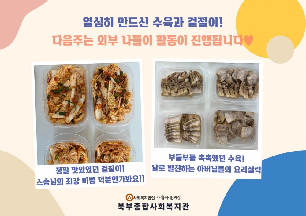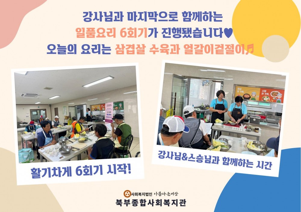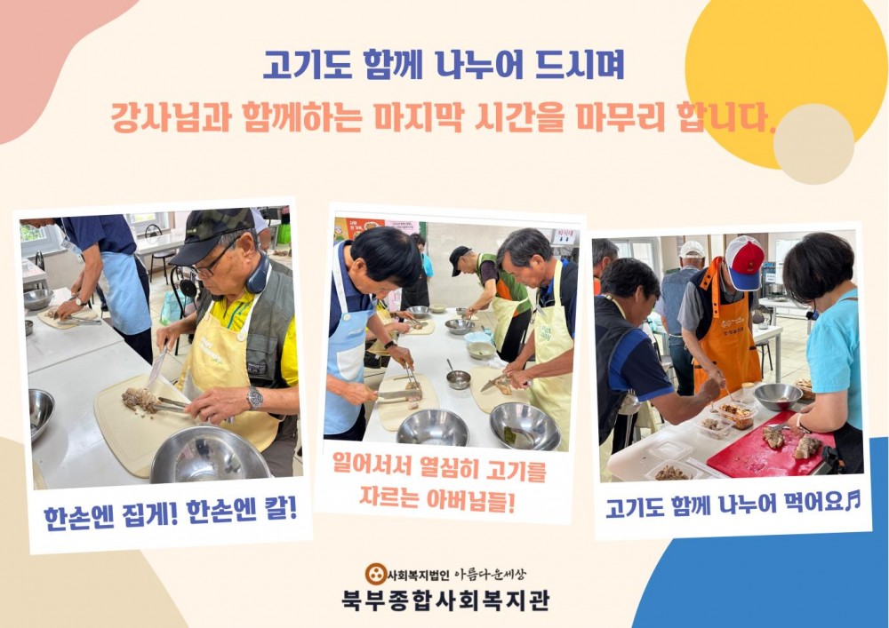 2024년 '더 우아한 시니어의 일품 요리 교실' 6회기 진행(수육&얼갈이겉절이) 페이지 정보 작성자 작성자 관리자 작성일작성일 2024.06.28 조회조회 98 본문 2024년 '더 우아한 시니어의 일품 요리 교실' 6회기 진행(수육&얼갈이겉절이) 이전글2024년 '더 우아한 시니어의 일품 요리 교실' 7회기 진행(지역사회 나들이) 다음글2024년 제20기 보리수 은빛문화센터 방학식 목록